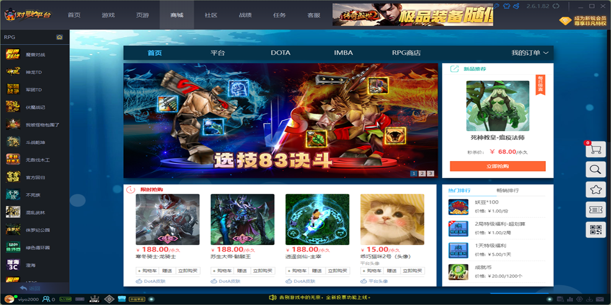 11对战平台是新一代对战休闲游戏娱乐平台,为用户提供多元化的游戏与互动娱乐体验,平台拥有端游、手游、页游、社区、资讯、赛事、直播、视频等业务内容,充分满足竞技休闲游戏用户在沟通、资…