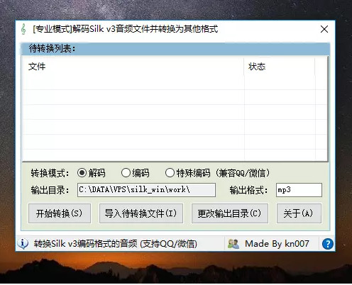 Silk2MP3是一款可以将微信语音、QQ语音转换为MP3播放的一款简易软件。Silk2MP3可以将Silk v3编码的语音文件,例如QQ和微信的语音文件进行转换,并输出为MP3格…